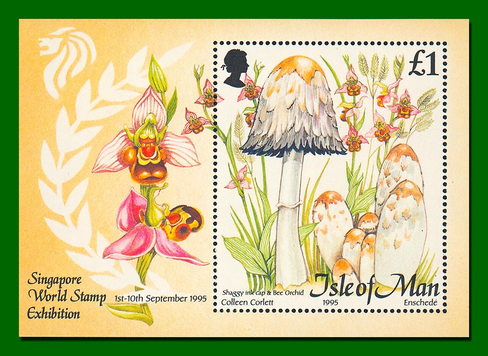 Die Bienen-Ragwurz (Ophrys apifera) ist auf dem Block der Isle of Man vom 1. September 1995 abgebildet.