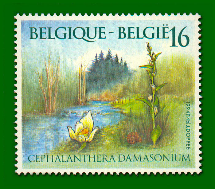 Das Weiße Waldvögelein (Cephalanthera damasonium) ist Motiv der belgischen Briefmarke vom 24. September 1994.