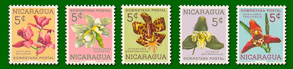 Einige Marken des schönen Orchideen-Satzes von Nicaragua aus dem Jahr 1962.