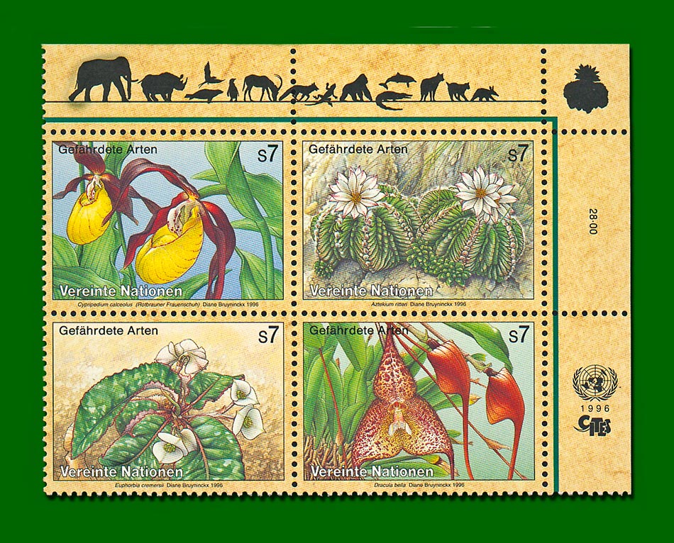 Die Wiener UNO-Ausgabe "Gefährdete Arten" vom 14. März 1996 bildet auch die Frauenschuhorchidee (Cypripedium calceolus) ab.