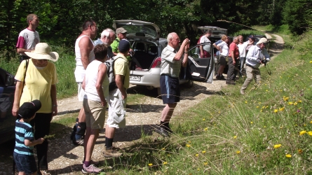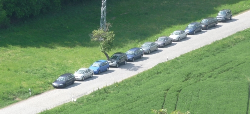 Die Exkursion am letzten Tag führte uns weit nach oben. | Der 'Fuhrpark' der Teilnehmer wartete inzwischen an der Straße im Tal. |