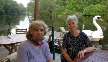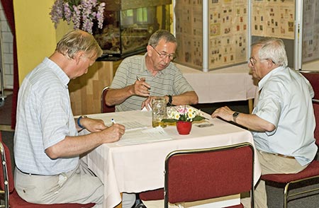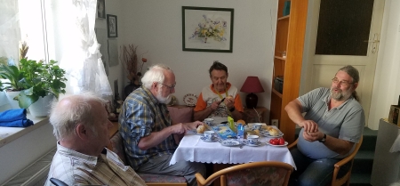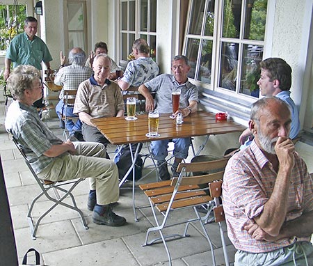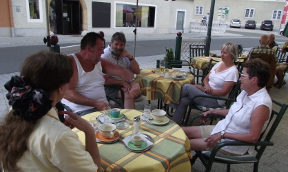 Teilnehmer beim Frühstück in der Pension | ...und beim Nachmittags-Ausflug an die Saale |