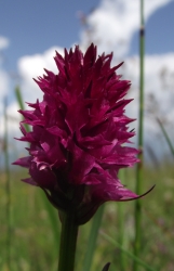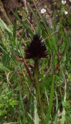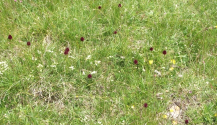 Dort waren zahlreiche Kohlröschen (Nigritella rubra, Nigritella nigra) zu finden, die auch gern von den Kühen gefressen werden. Ob die Milch dem Orchideenfreund dann besser schmeckt? |
