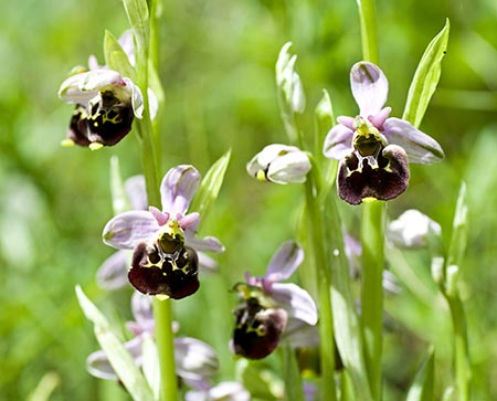 Verschiedene noch blühende Orchideen, die wir auf unserer Exkursion im Leutratal fanden |