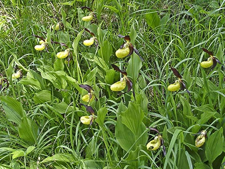 Auf unseren Exkursionen fanden wir einen ganzen Wald voller Cypripedien, aber auch | viele Listera ovata | und Ragwurze. |